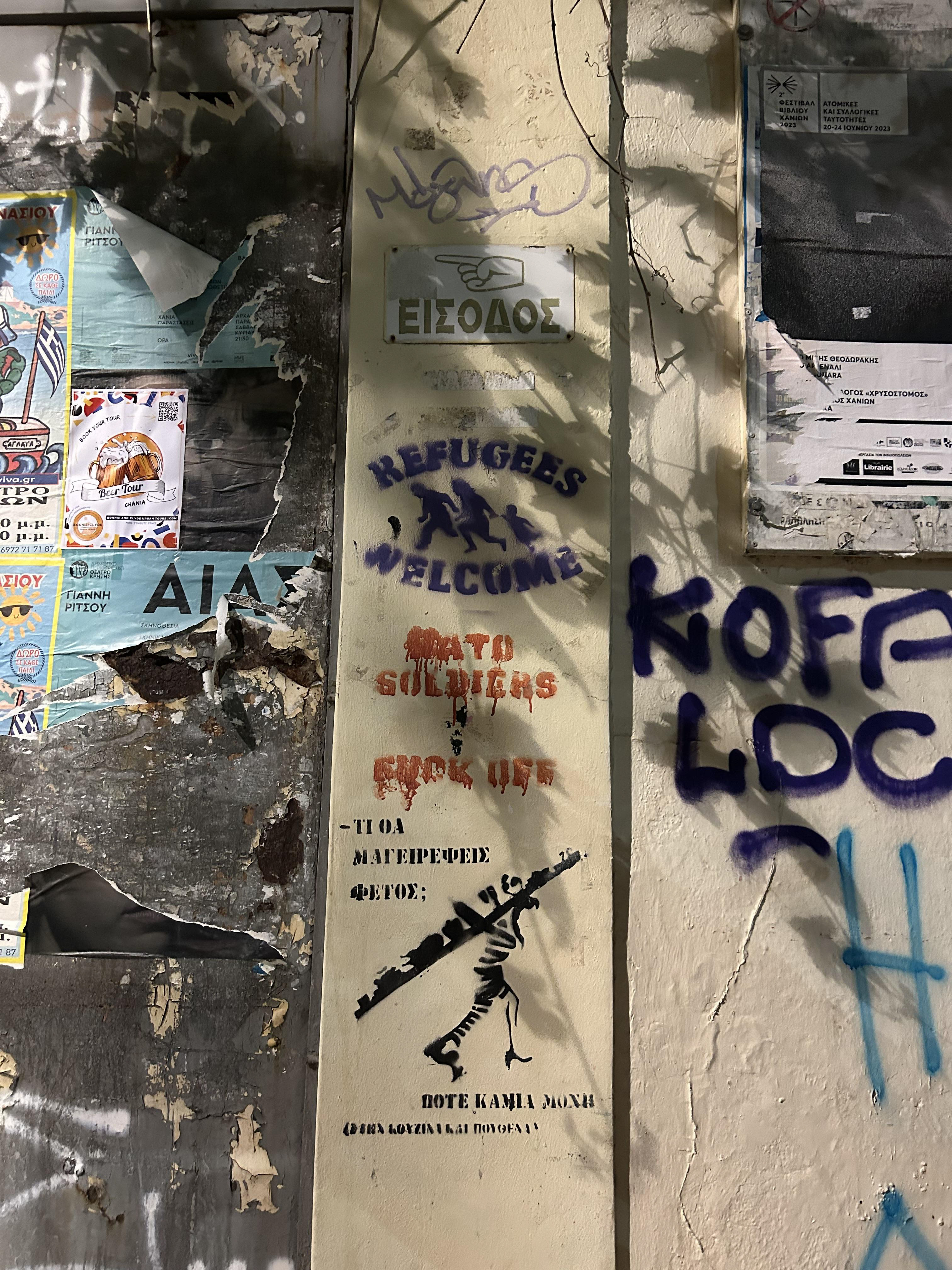 Across fieldwork in Greece, Malta, and Cyprus (2023–2024), I filmed and produced video narratives and developed a digital strategy to support program outreach. This body of work was shaped by time spent in Alikianos, Chania, and Rethymno on the island of Crete, where natural landscapes and graffiti offered a visual dialogue between environment and political identity.